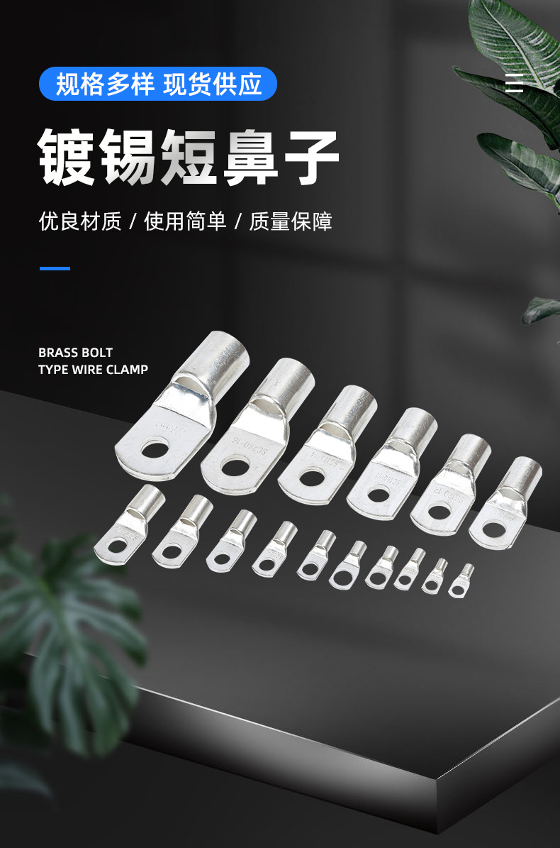 Прочее 1 Square peephole tinned pressure wire ear terminal block head short neck copper wire ear cable wiring nose cold pressure wire nose copper terminal block copper copper tinned peep mouth type copper nose