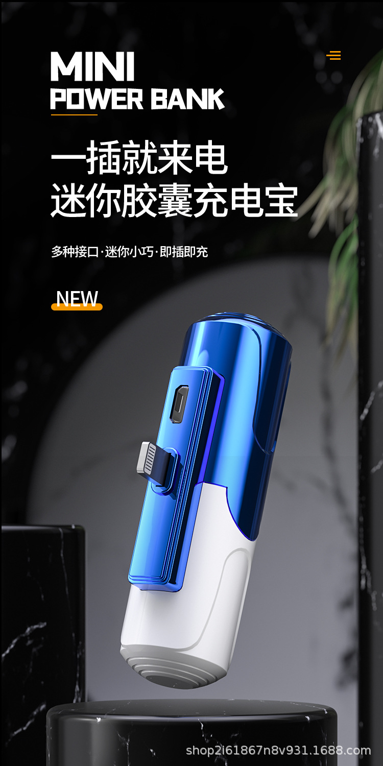 Специально разработанный мини-капсульный power bank для трансграничного экспорта, портативная быстрая зарядка, встроенный шнур, мобильный источник питания, производитель с прямым подключением