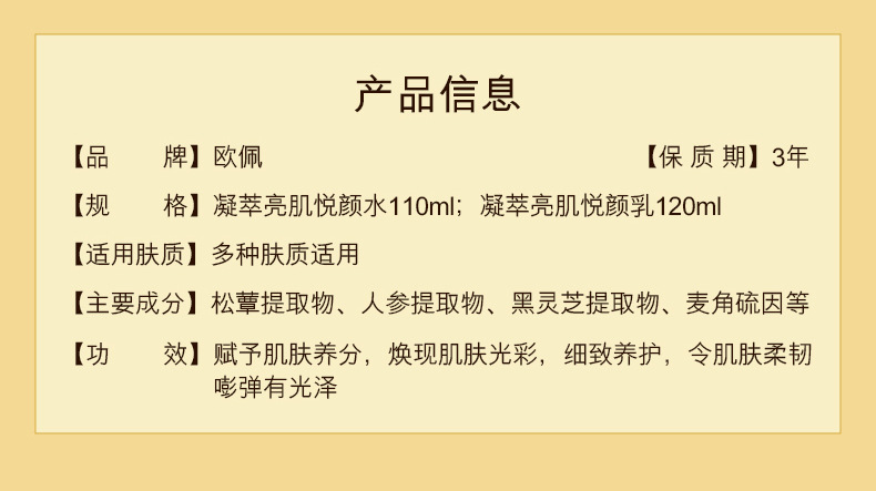 Название продукта Ou Pei Ning Extract Brightening Muscle Yue Yan Water Emulsion