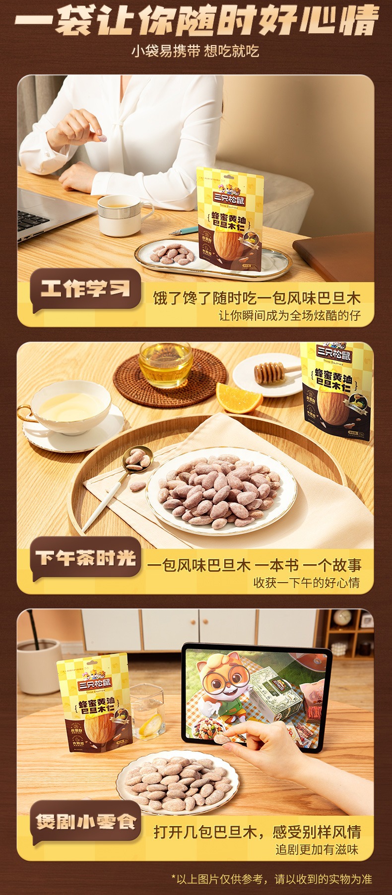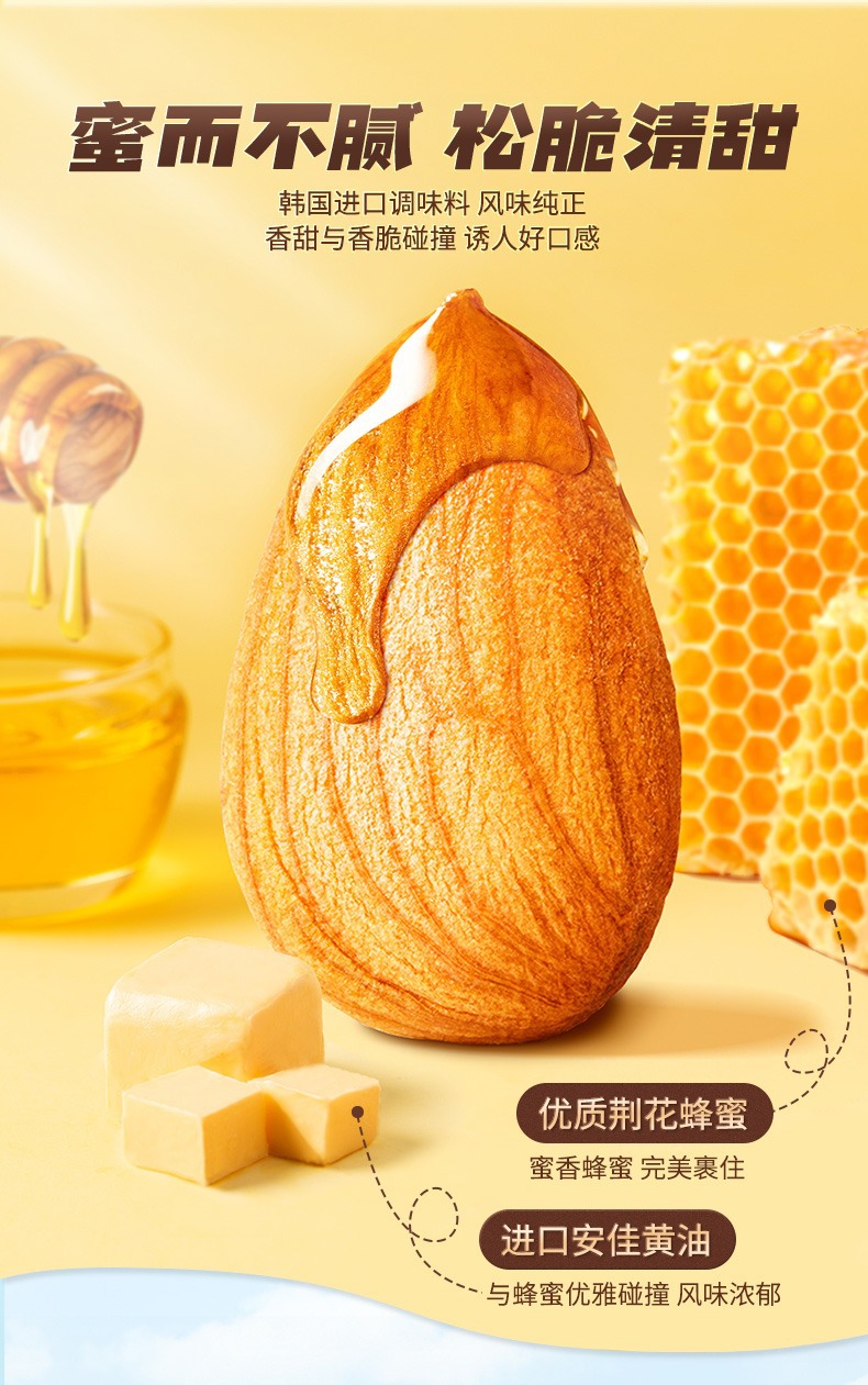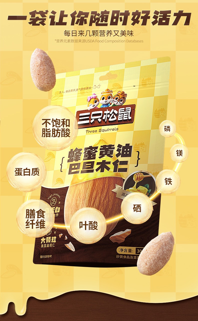 ![[Three Squirrels honey butter almond 30 g/bag] nut casual snack specialty big nut](/api/image?url=https%3A%2F%2Fcbu01.alicdn.com%2Fimg%2Fibank%2FO1CN01OzP2wE1OBX5w6NmXr_!!2208541071667-0-cib.jpg)