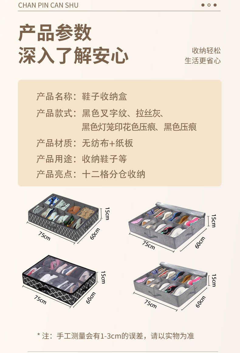 ![]() | Imitation linen black edging shoe box | 75*60*15cm | ¥12.5 / ≈ 151 ₽ | 969098 | 5315518937035 | |