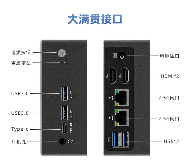 Интерфейс Usb3.0*4, hdmi2.0*2, 2.5g network port*2, type-c