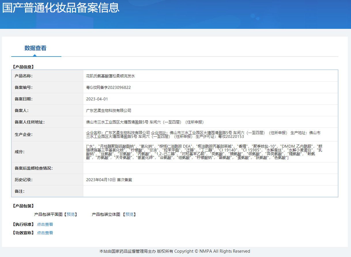 Номер сертификата регистрации несpecial косметики Guangdong g makeup network preparation number 2023096822