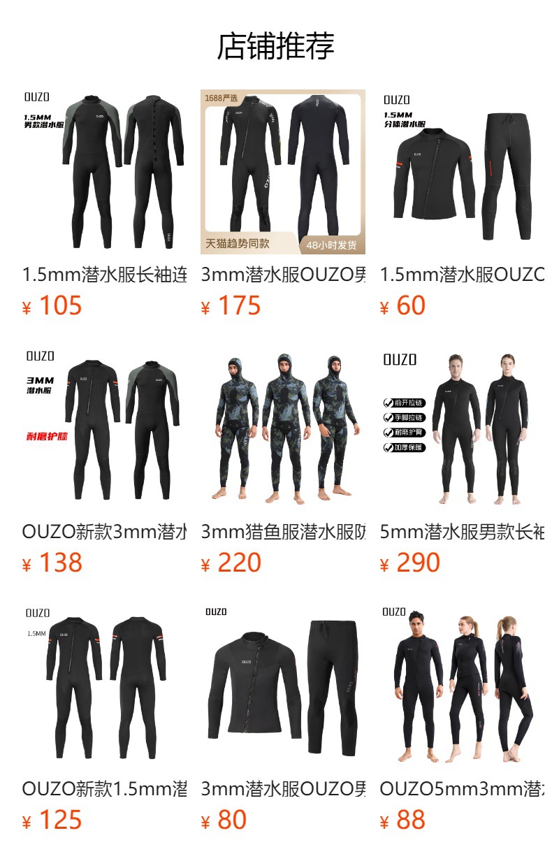 此款潜水服套装(上衣+裤子)最低零售价不得低于278元