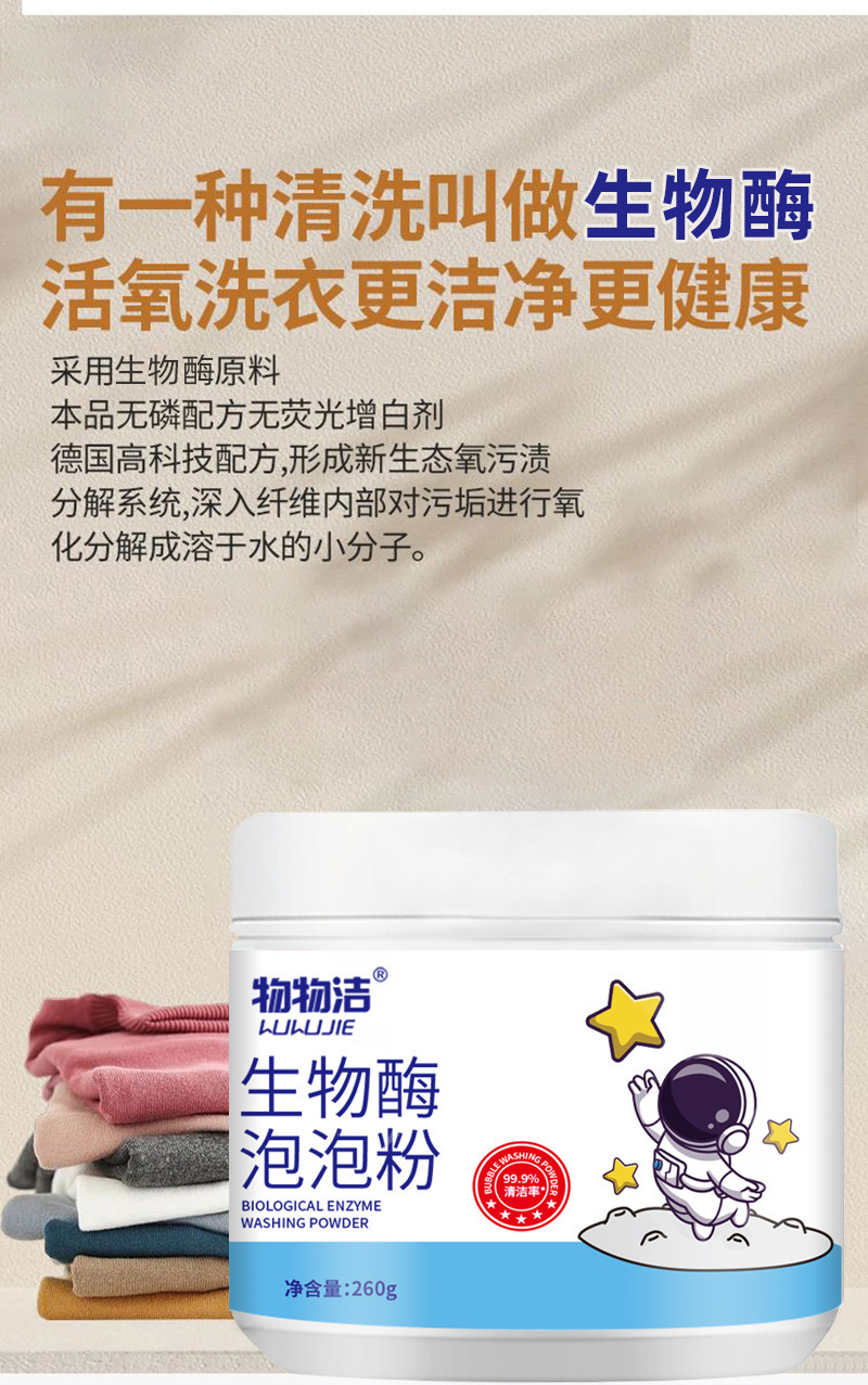 Биологический фермент активного кислорода, пузырьковый порошок 260г, без стирки, ленивый стиральный порошок для удаления желтизны, дезинфекции, плесени и отбеливания одежды