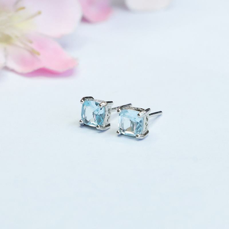 Yuyu S925 серебро, инкрустированные натуральным топазом, швейцарские синие квадратные серьги, оптовая продажа CB3042607