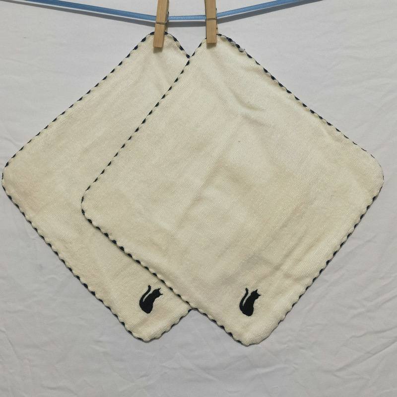Специальное предложение однотонное черное полотенце с вышивкой кота из Франции, однослойный бархатный маленький платок для детей