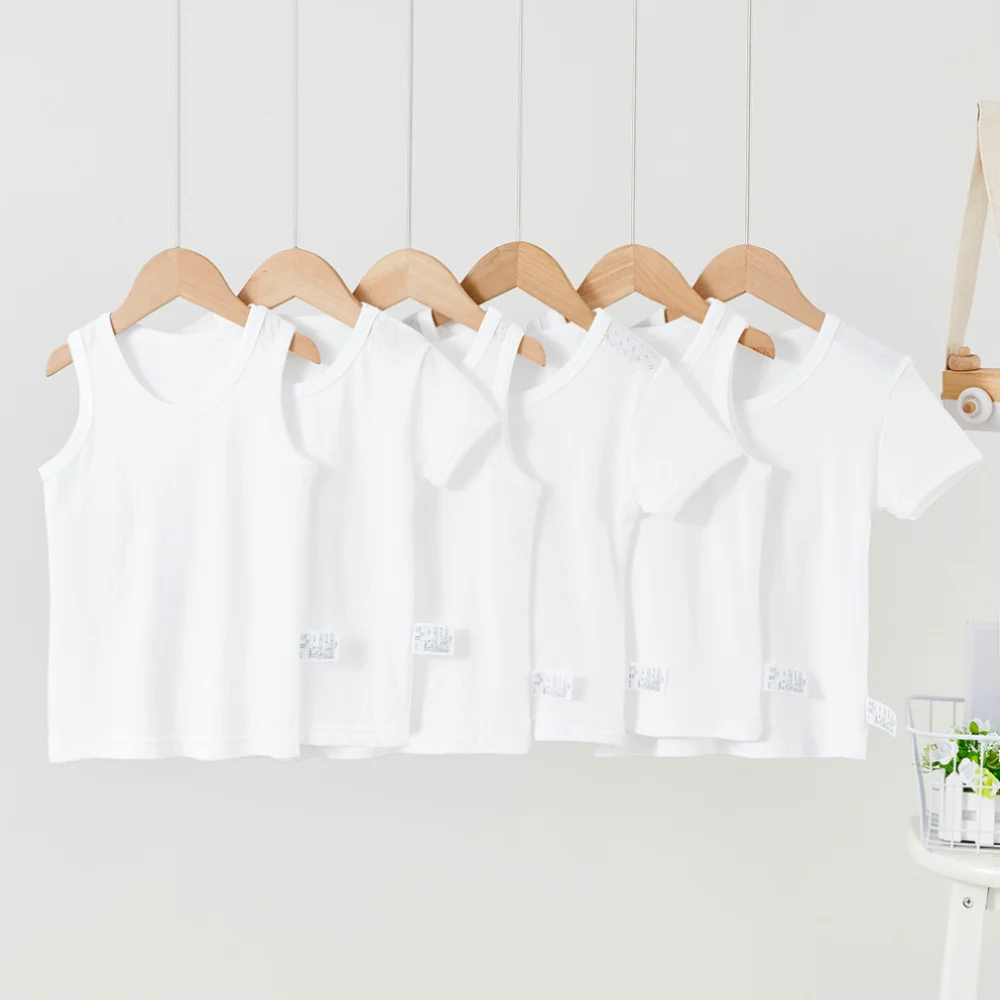 Детская майка 2 штуки, чисто белая, без флуоресцентных веществ, японская, для мальчиков и девочек, 100% хлопок, сетчатая, без рукавов, летняя, тонкая