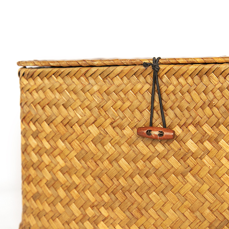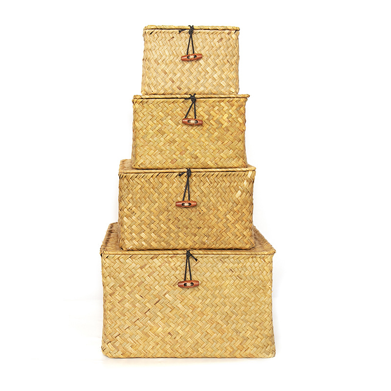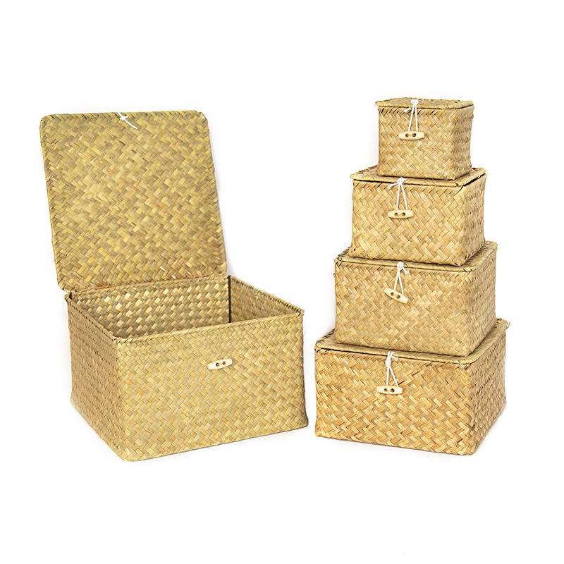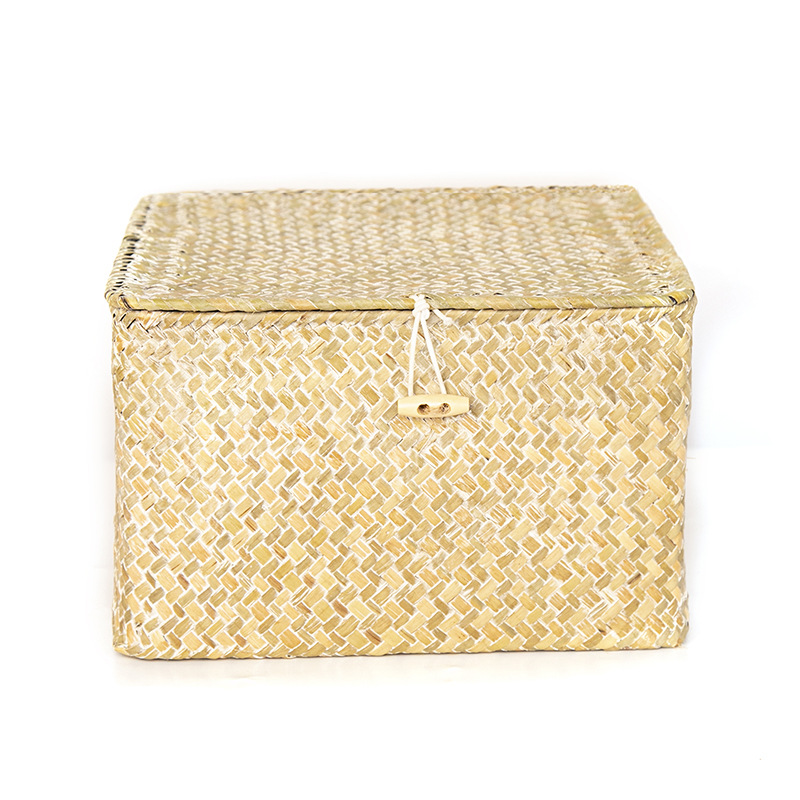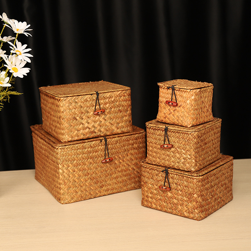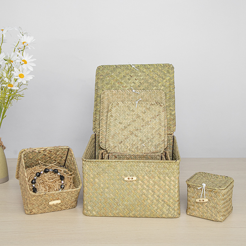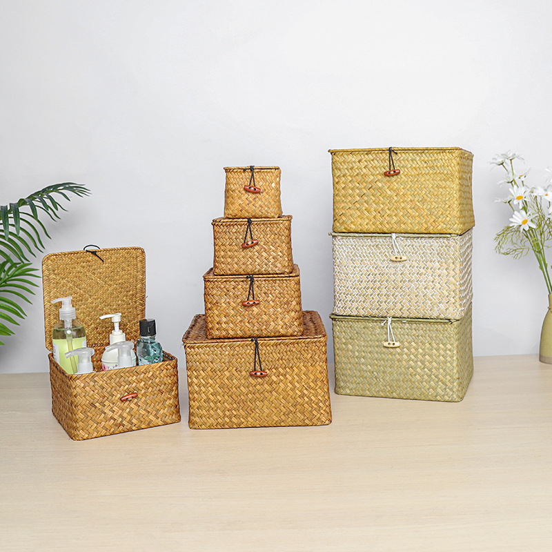 Корзина для хранения из водорослей ручной работы с крышкой, квадратная, для десктопа, для мелочей и закусок