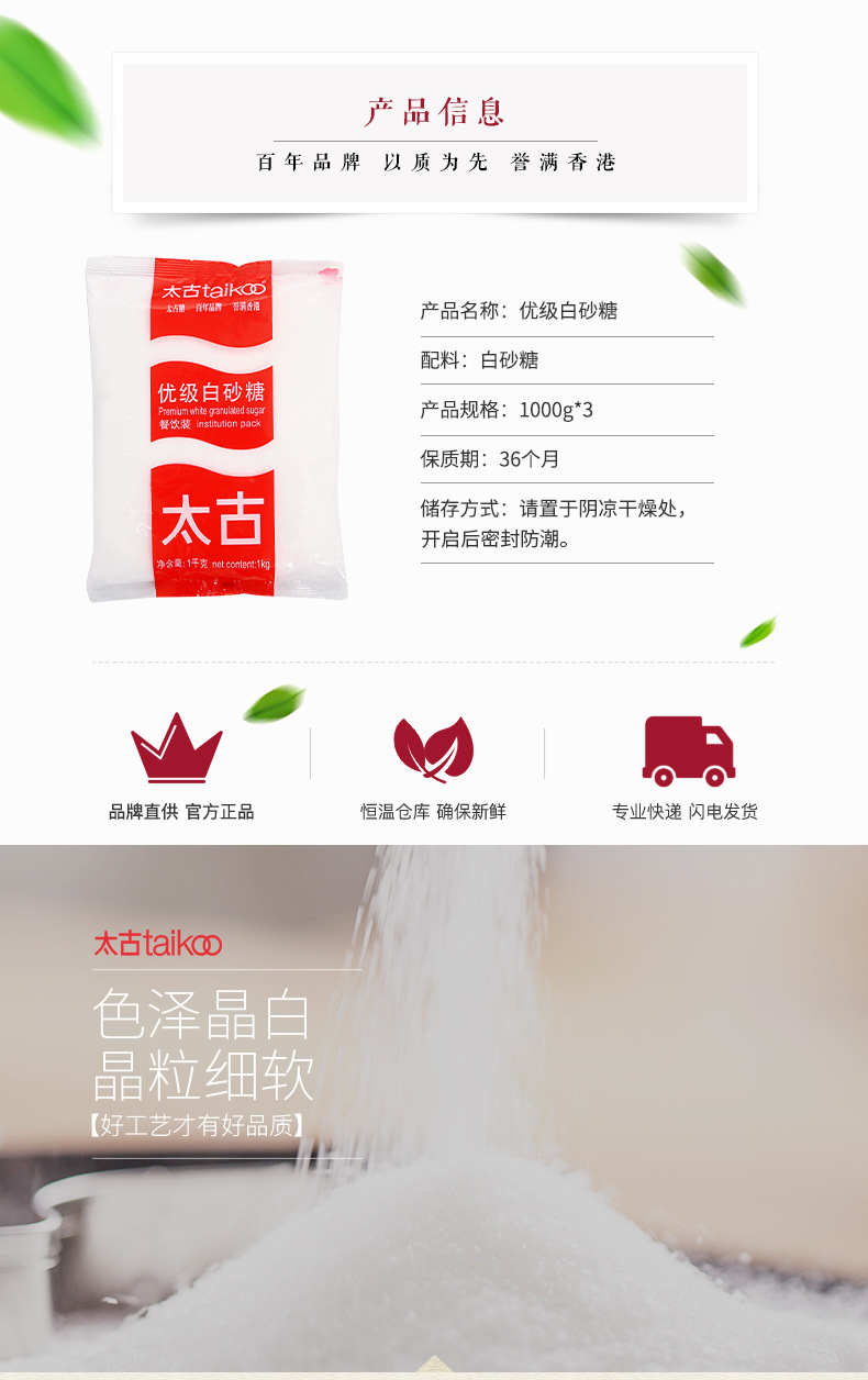 ![]() | Taigu premium white sugar 300g (40 bags for the whole piece) | ¥7.5 / ≈ 91 ₽ | 645 | 5179515422354 | |