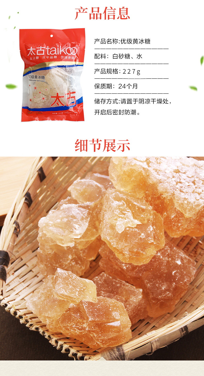 ![]() | Taigu single crystal rock sugar 227g (48 bags of whole shot) | ¥7.0 / ≈ 85 ₽ | 0 | 5179515422356 | |