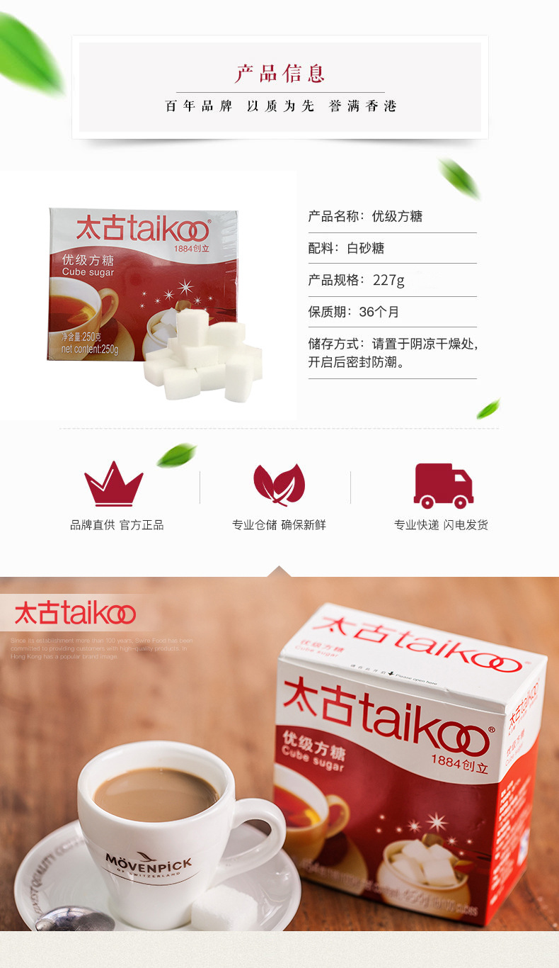 ![]() | Taikoo premium sugar cubes 250g | ¥9.0 / ≈ 109 ₽ | 302 | 5853637532837 | |