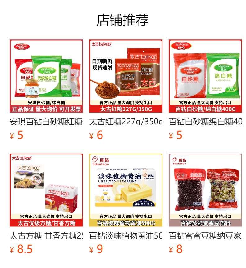 ![]() | Taigu white sugar 227g (48 bags for the whole piece) | ¥6.0 / ≈ 72 ₽ | 8 | 5179515422348 | |