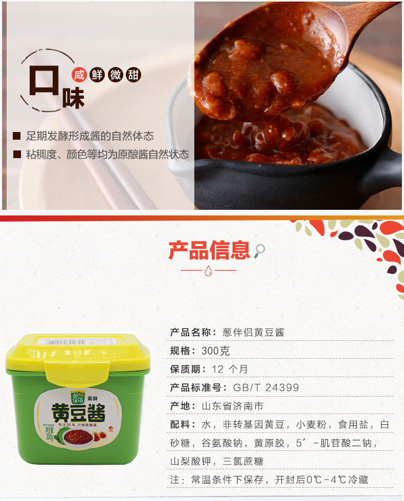 ![]() | Scallion companion June fragrant soybean paste 300g | ¥4.55 / ≈ 55 ₽ | 448 | 5415477359175 | |