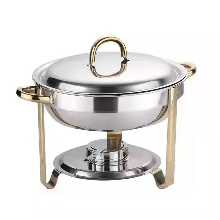 Буфетный котелок из нержавеющей стали, изоляционный котелок для ресторана, золотая круглая спиртовая плита, подогреватель пищи