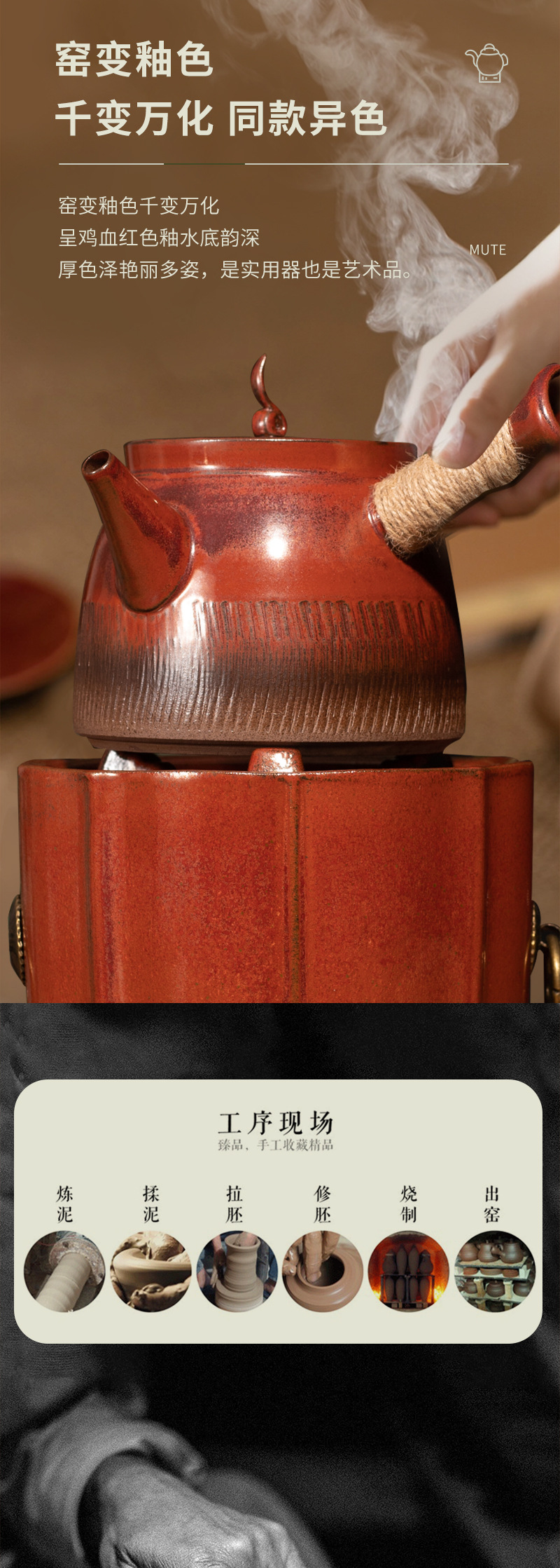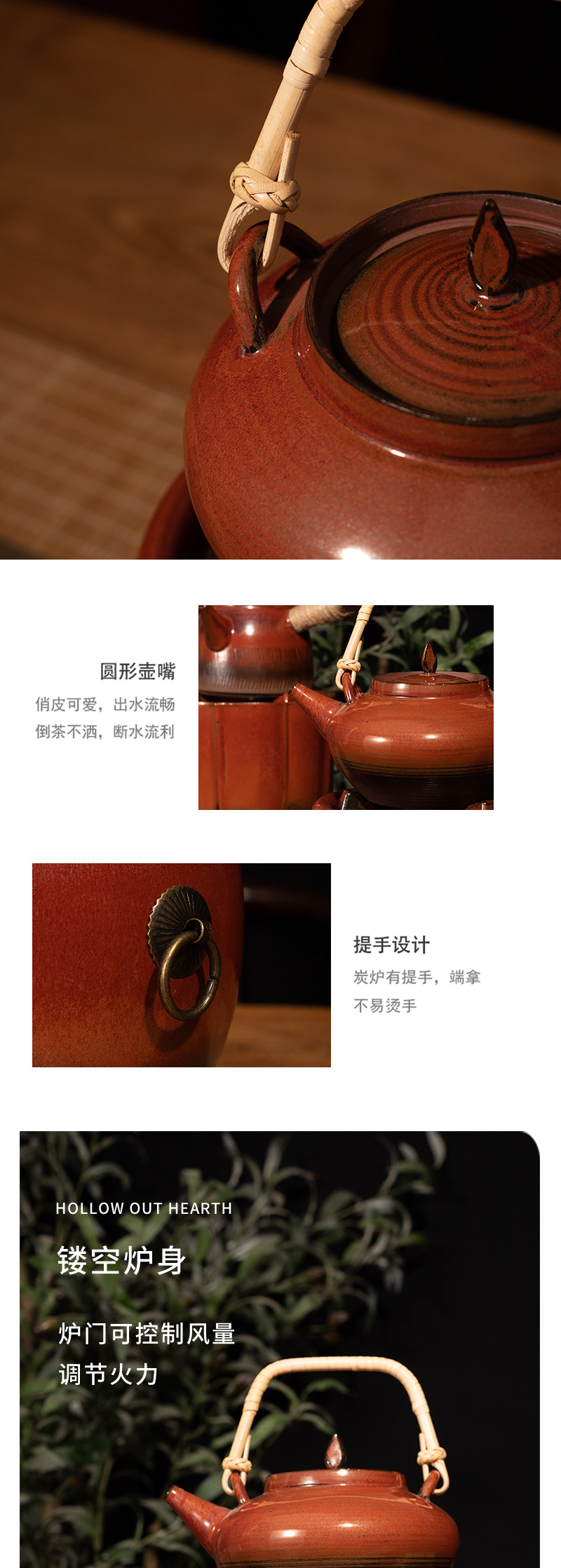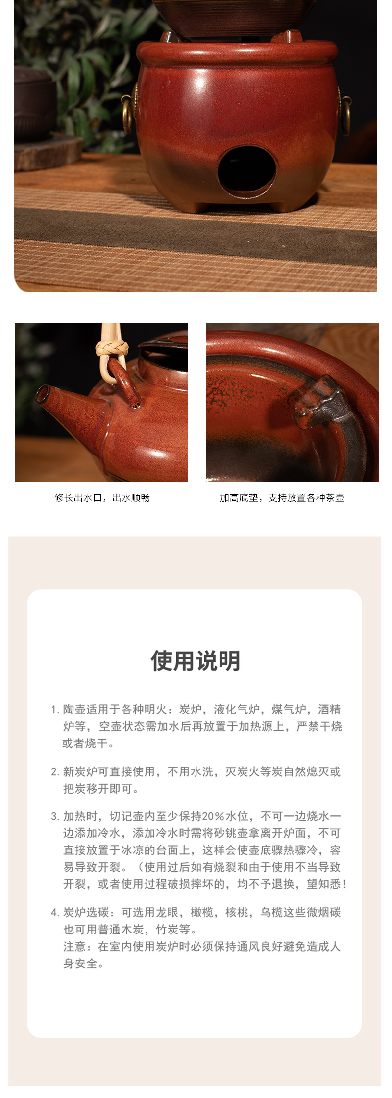 Угольная печь для дома, сменная красная глина, керамический котел для кипячения воды, термостойкий корпус, чайник, крышка для алкоголя