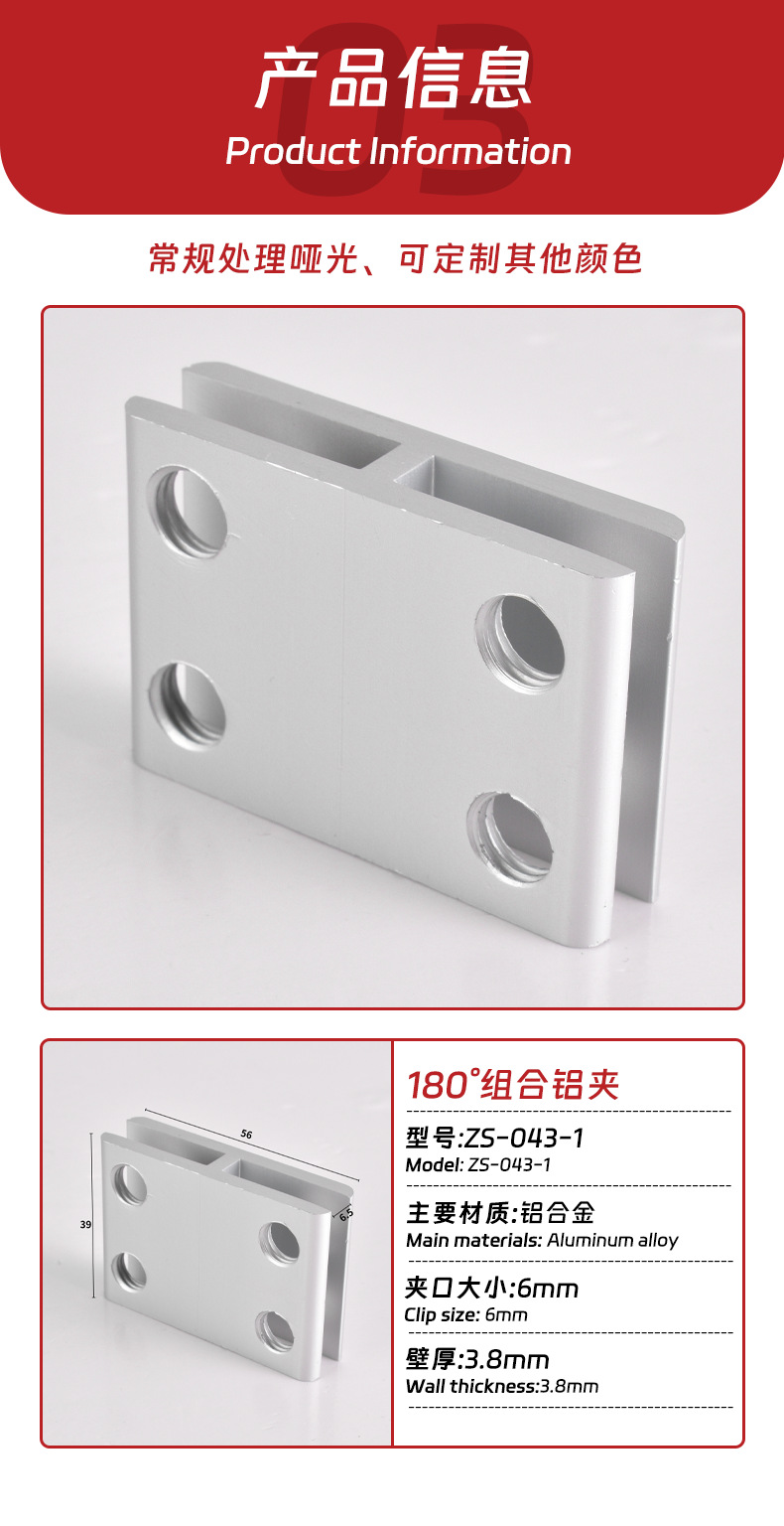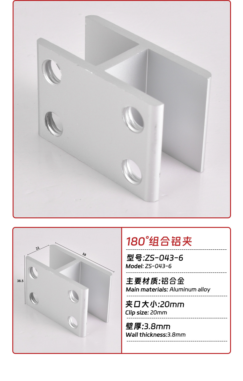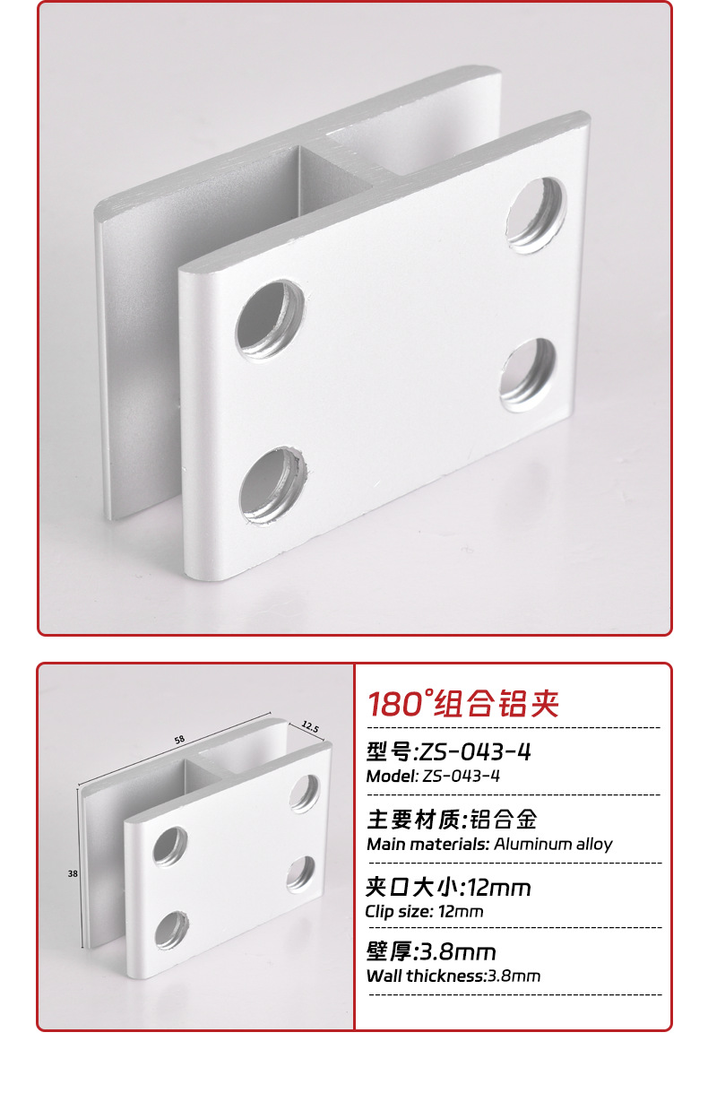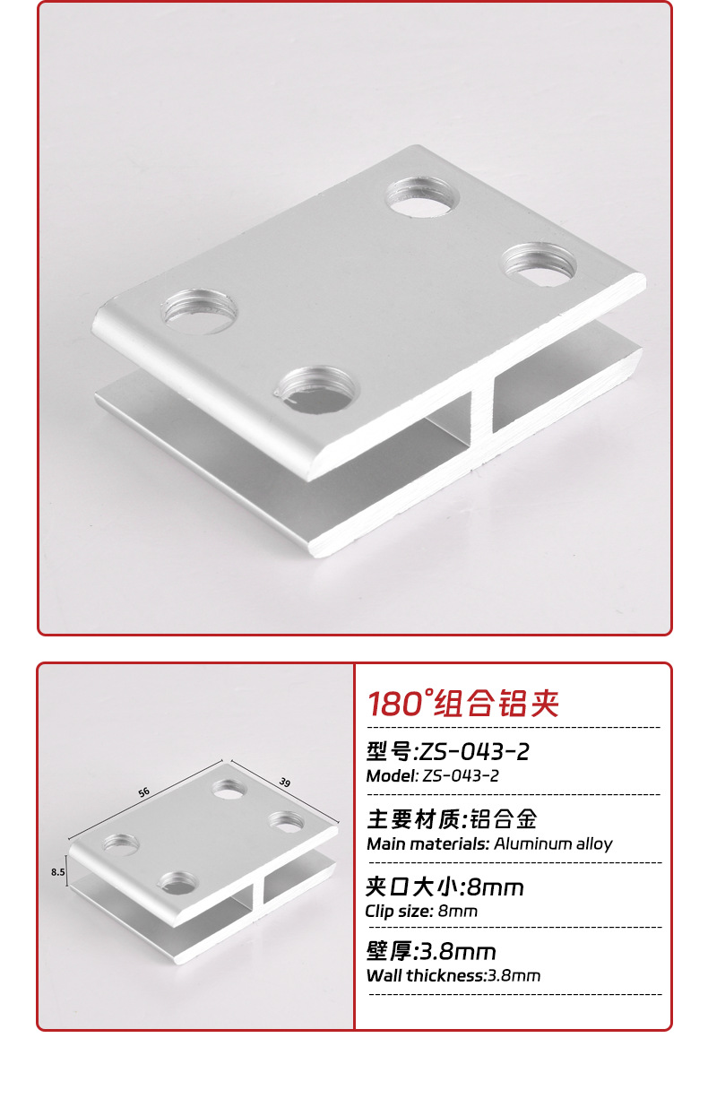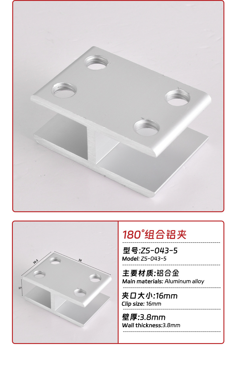 180 ° алюминиевый сплав зажим для стекла фиксированный зажим алюминиевый зажим соединитель без сверления