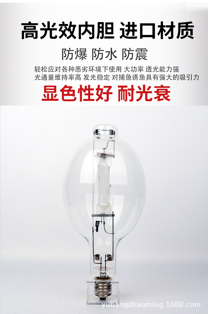Металлогалогенная лампа для рыбалки Ball bubble fish 1000w, лампа для ловли на лодке, светильник для воды, галогенная лампа для ловли кальмаров