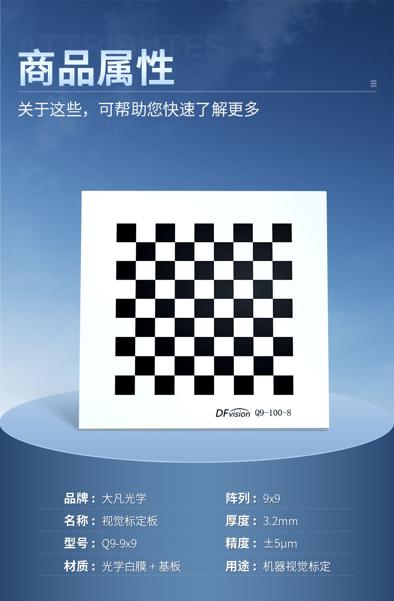 Калибровочная доска для машинного зрения с высокой точностью 9x9, черно-белая решетка, шахматная доска, калибровочная доска Dafan optics