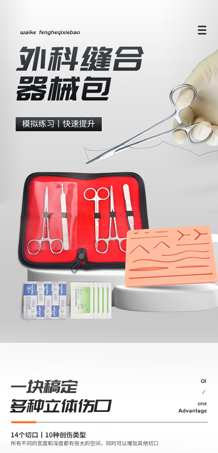 Набор для хирургической подготовки студентов медицинского вуза, инструменты для швов, силиконовая имитация кожи с ниткой и держателем для иглы