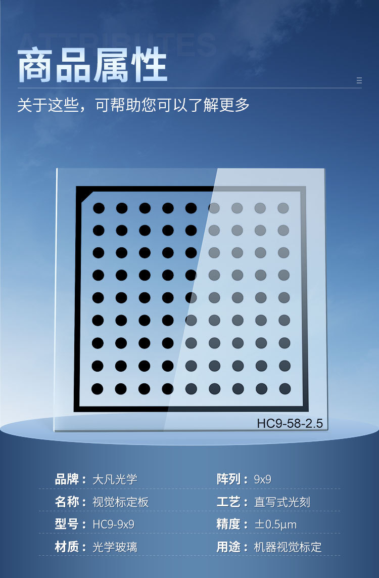 Калибровочная стеклянная плита 0.5Um с высокоточной хромированной точечной решеткой для тестирования искажений