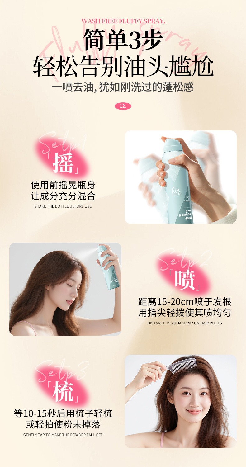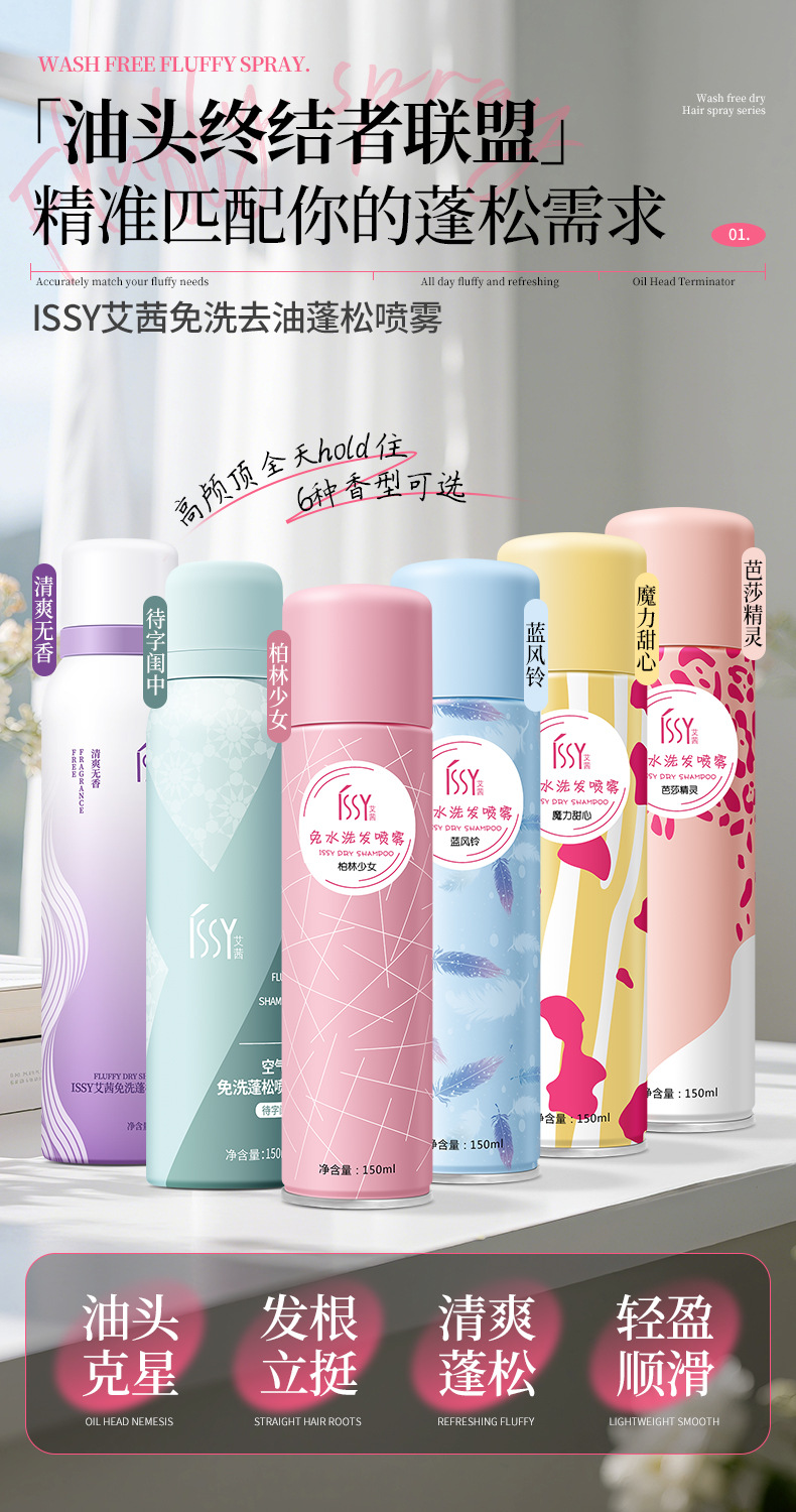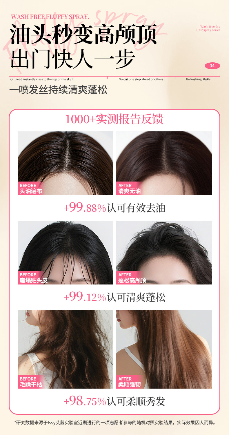 Спрей для волос без мытья для удаления масла, флюффи, для высоких челок, сухих волос, без белого налета и запаха
