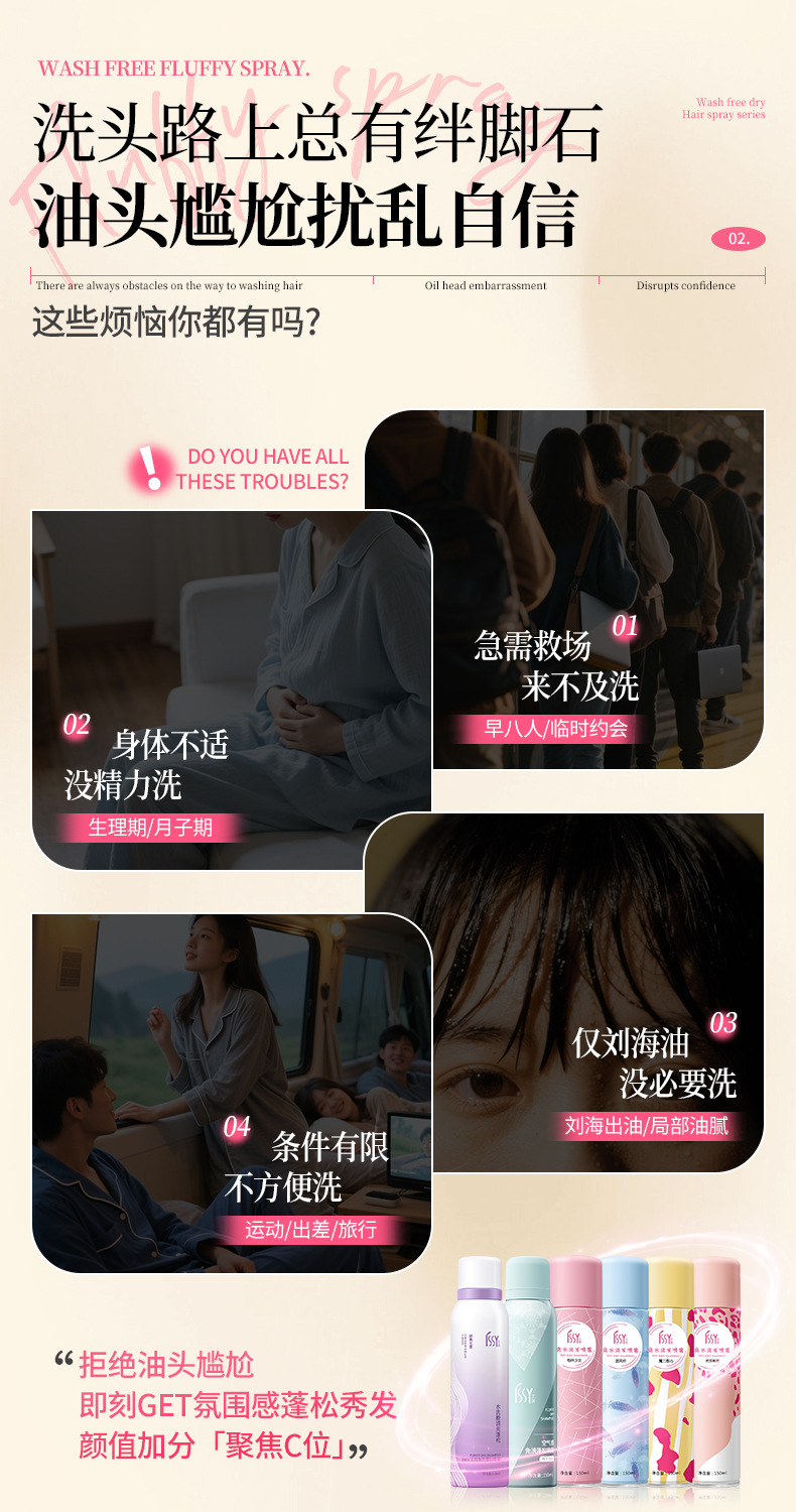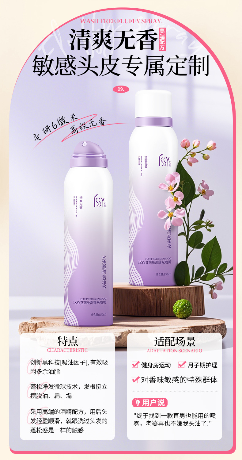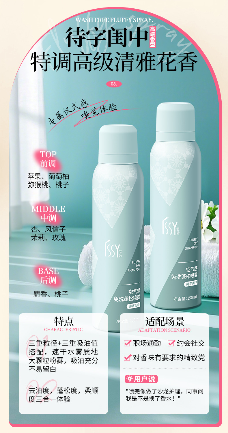 Спрей для волос без мытья для удаления масла, флюффи, для высоких челок, сухих волос, без белого налета и запаха