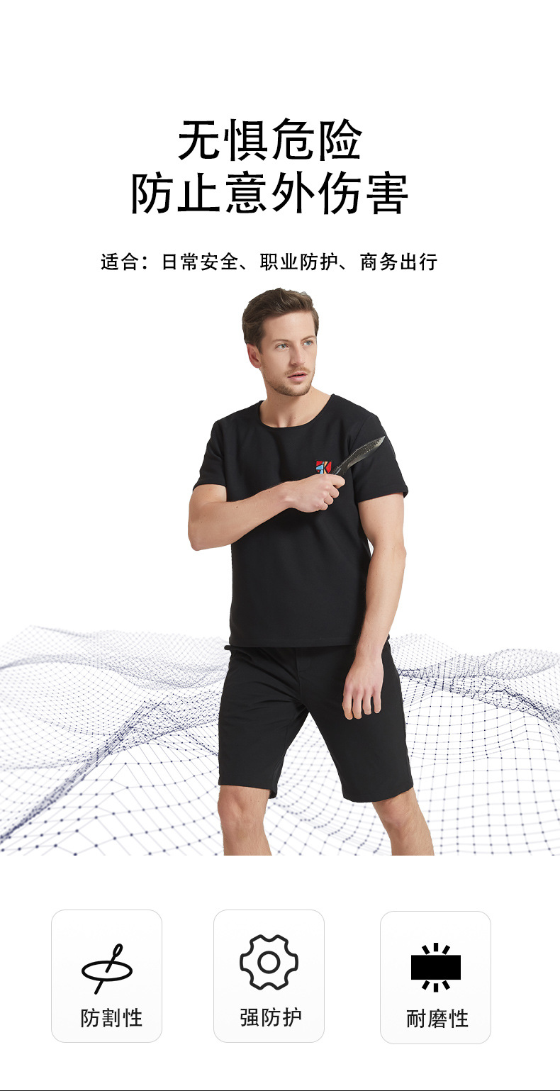 Легкая футболка для самообороны для мужчин, короткий рукав, скрытая, дышащая, ультратонкая 1,5 мм, легкая и защитная от ножевых ударов