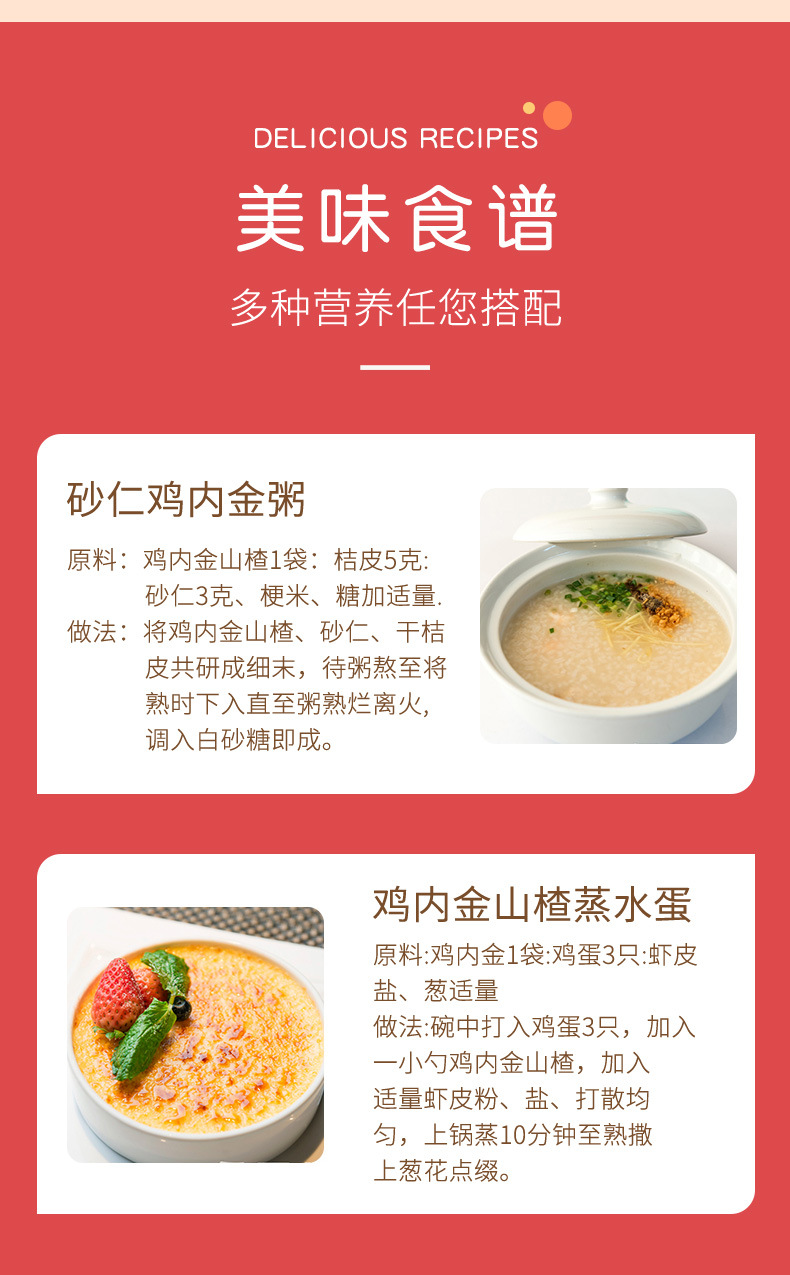 Основные сырьевые материалы Chicken gizzard, hawthorn, malt, jujube