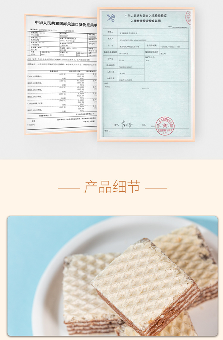 2、威化系列发货说明:因为进口商品,产品信息均在外箱的海关标贴上,3.5g威化整箱约400片/箱,10g威化整箱约200片/箱,按整箱数量的整数倍数拍下,原装原箱发货,非整箱拍下均需拆箱发货,不保证原箱发货,可能会有个别饼干运输中有碎裂情况,不作售后处理,不支持7天无理由退换,介意的亲们慎拍哦!