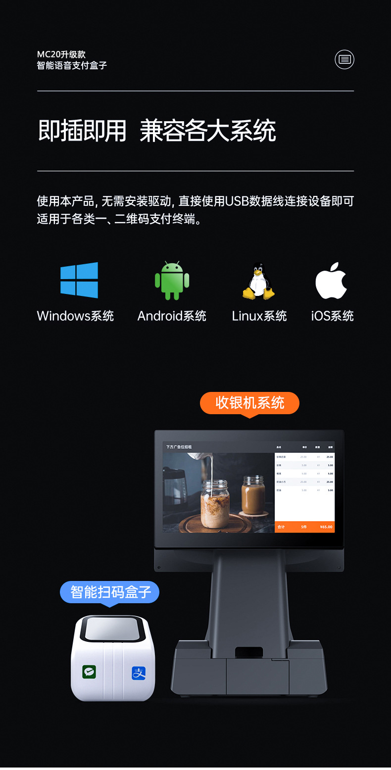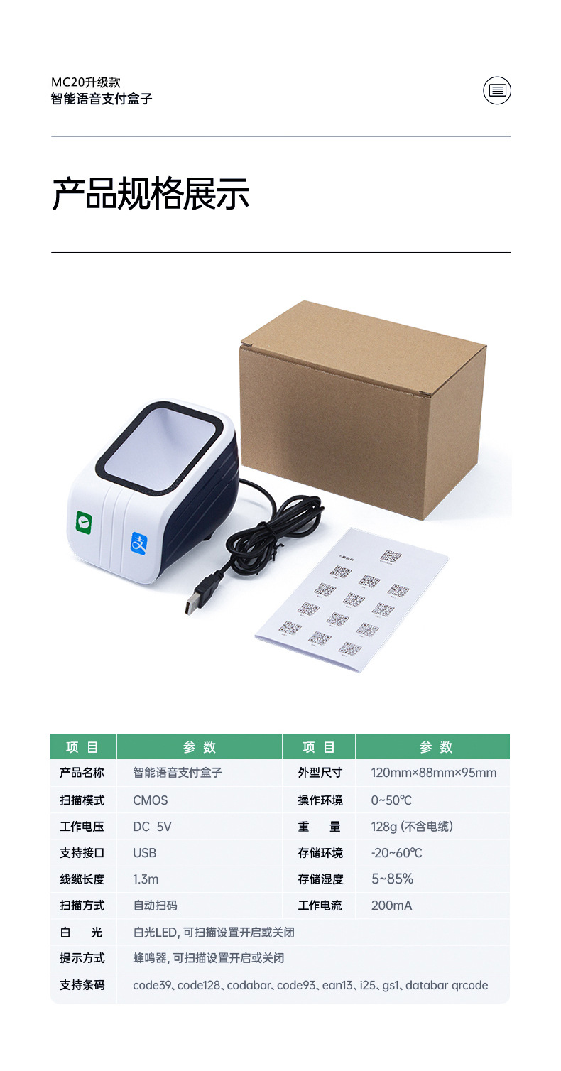 Коробка для оплаты по коду Сканер кассового аппарата WeChat Alipay Медицинская страховка Электронный ваучер Проводной сканер Пистолет для сканирования
