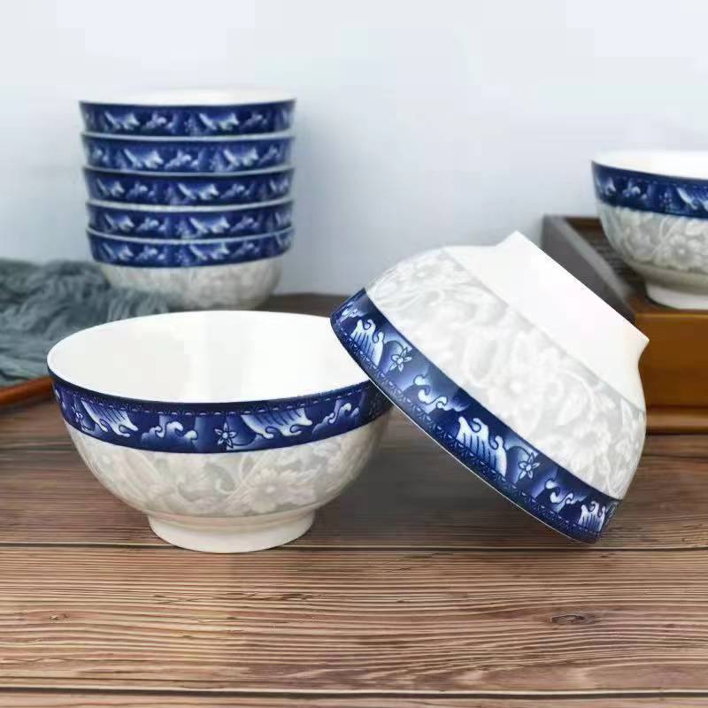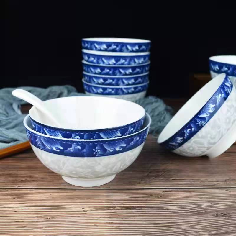 Большая рисовая чаша из голубого и белого фарфора, большая суповая чаша, большая чаша для лапши, хозяйственная чаша для маринованной капусты, рыбы, отварной рыбы, керамическая рисовая чаша, оптовые производители