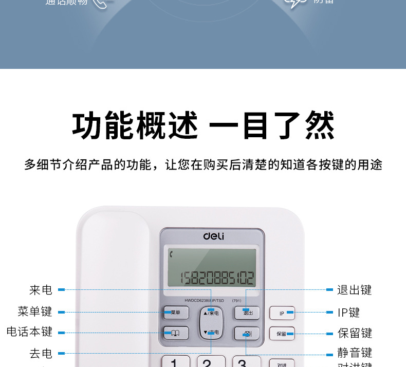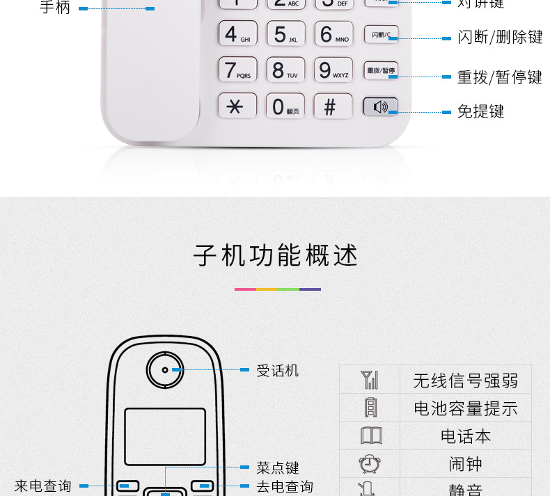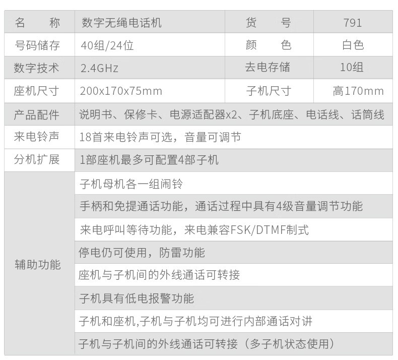 Deli 791 цифровой беспроводной телефон 2.4g с высокой конфиденциальностью для стационарной связи