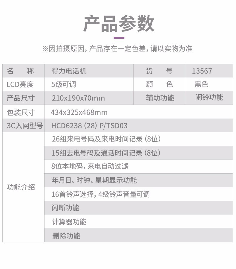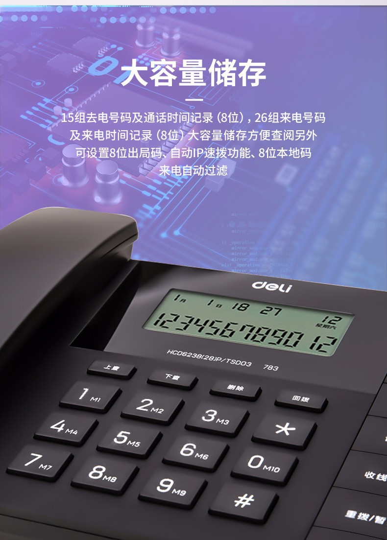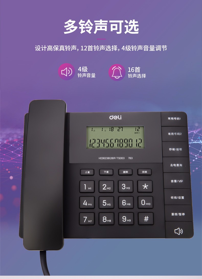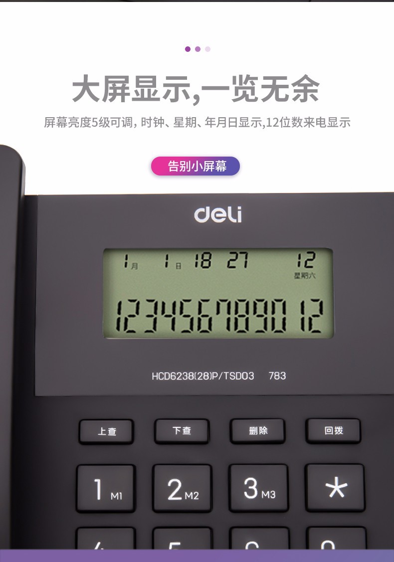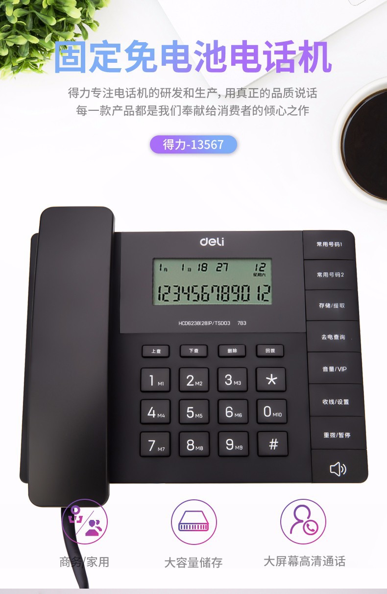 Телефон Deli 13567 стационарный для бизнеса и дома, без батареи, модный дизайн