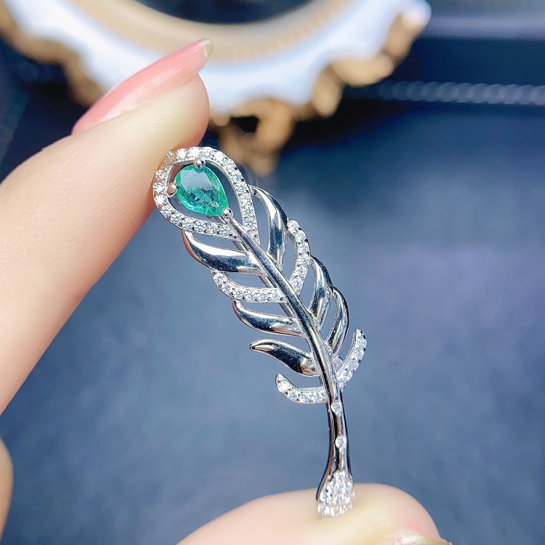Оптовая продажа популярной натуральной изумрудной брошки из серебра S925 с основным камнем 4*6, горячие продажи, европейская и американская дропшиппинг