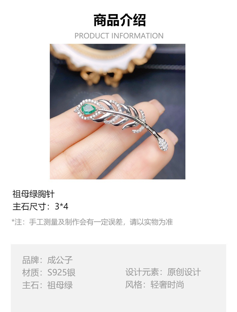 Название товара Natural emerald brooch S925 silver inlaid main stone 4*6