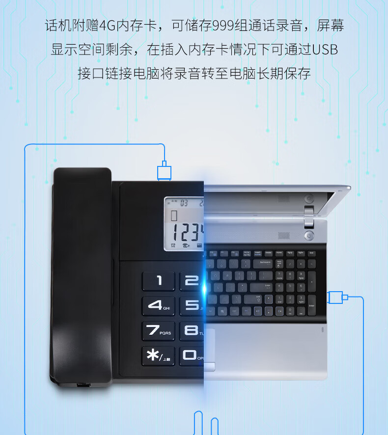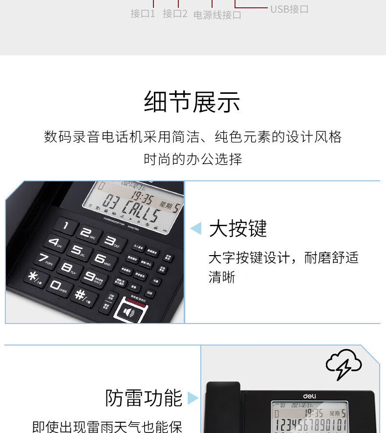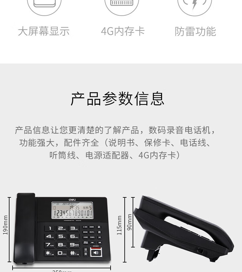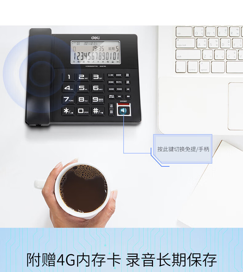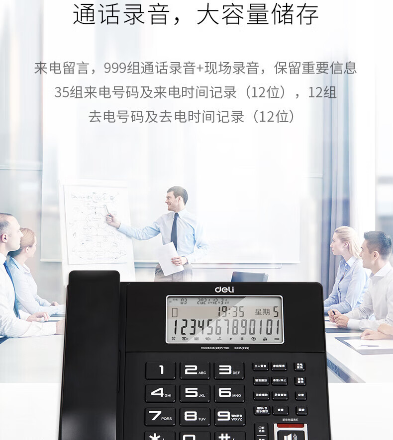 Записывающее устройство Deli 799, фиксированный телефон с идентификацией номера и картой памяти 4G