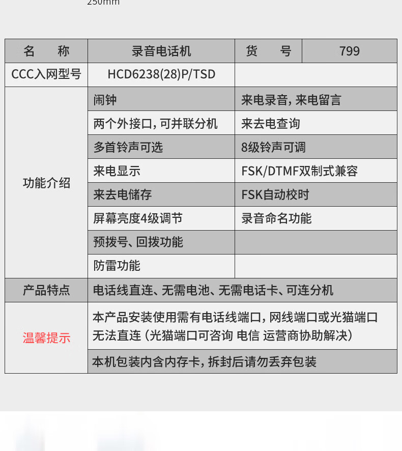 ![]() | 799 recording telephone set (with 16g memory card) | ¥279.0 / ≈ 3 361 ₽ | 641 | 5318329418967 | |
