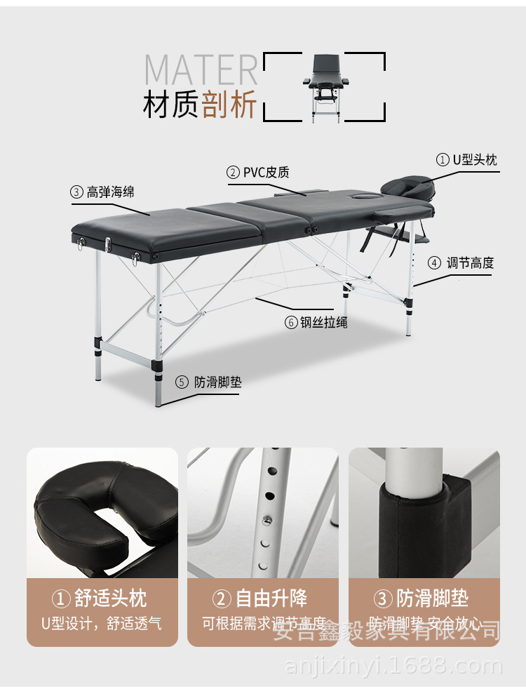 Новая складная массажная кровать из алюминиевого сплава, портативная для татуировок