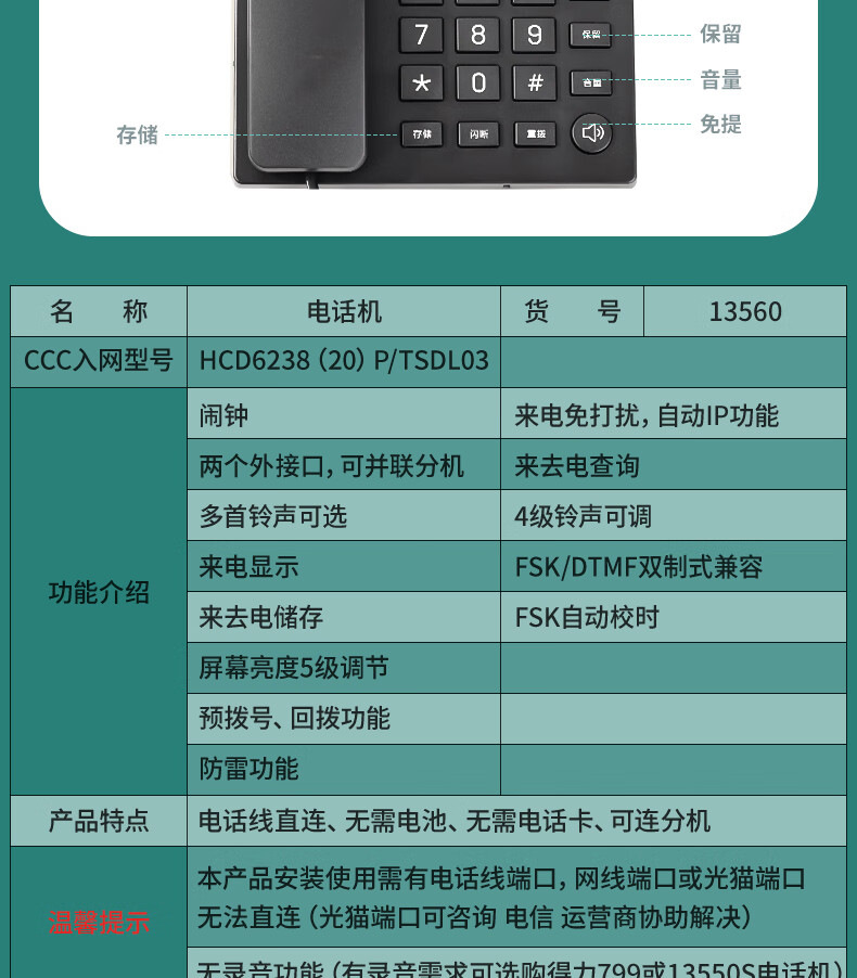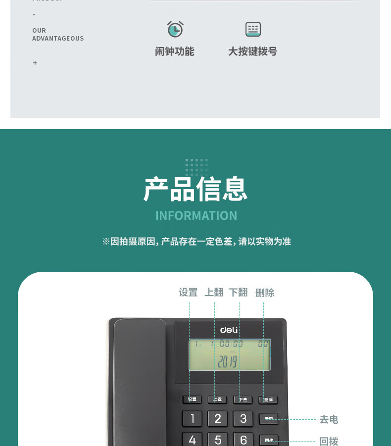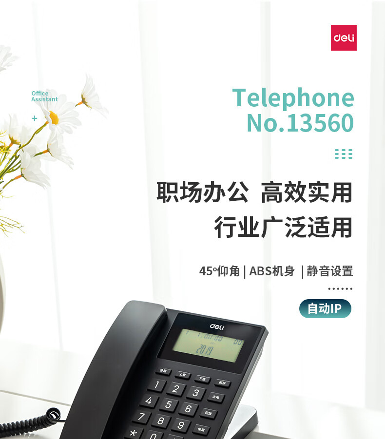 Deli 13560 телефон стационарный фиксированный для офиса и дома с углом 45 °
