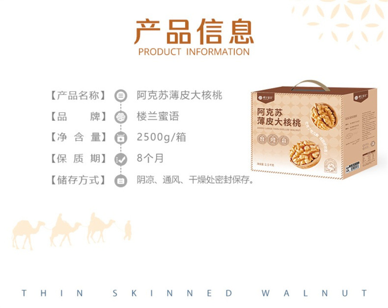 Орехи грецкие с тонкой скорлупой Loulan 2500г, специализированные сушеные фрукты Синьцзяна, новый продукт, оригинальный вкус орехов