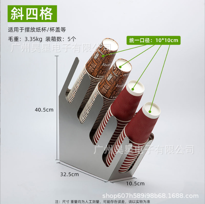 Стойка для хранения одноразовых стаканов для кафе из нержавеющей стали, с наклоном, четырехсекционная, без сверления