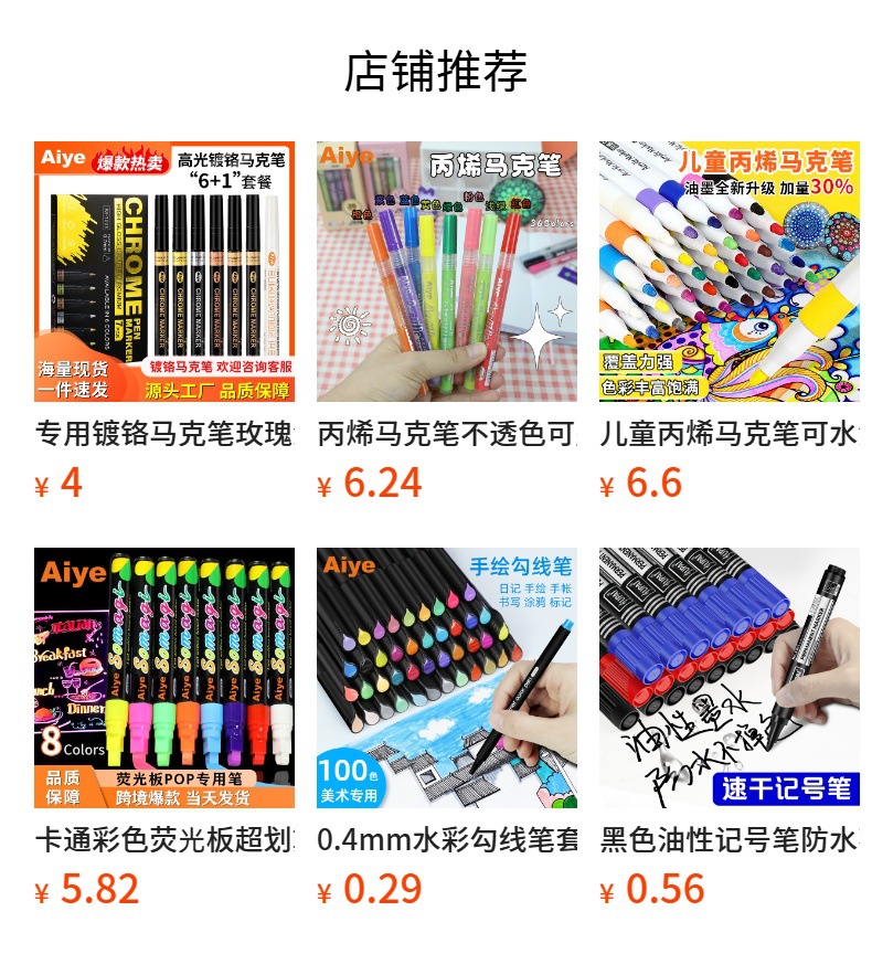 ![]() | 24-color fabric pen (single head) | ¥18.0 / ≈ 217 ₽ | 50318 | 6090115155019 | |