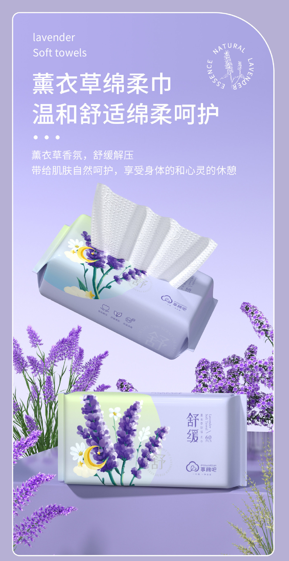 Одноразовое лицо полотенце из хлопка с лавандой, утолщенное, съемное, для салонов красоты, мягкое очищающее полотенце