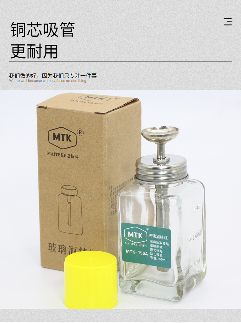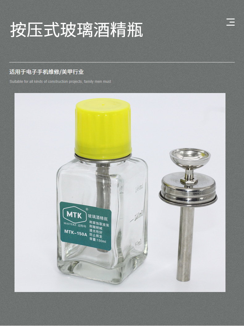 Прессованная стеклянная алкогольная бутылка с утолщенным медным сердечником, прозрачная, промышленная, антистатическая, оптовая бутылка для маникюра