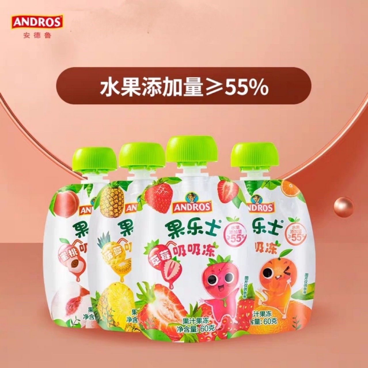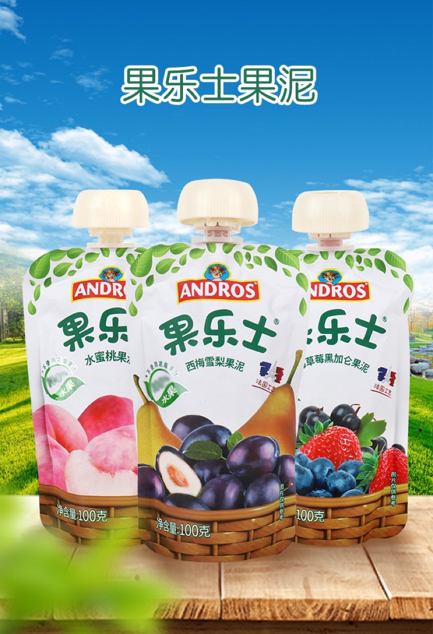 Продуктовая линия ANDROS; 100% фруктовое пюре/фруктовый хрустящий/соус в упаковке