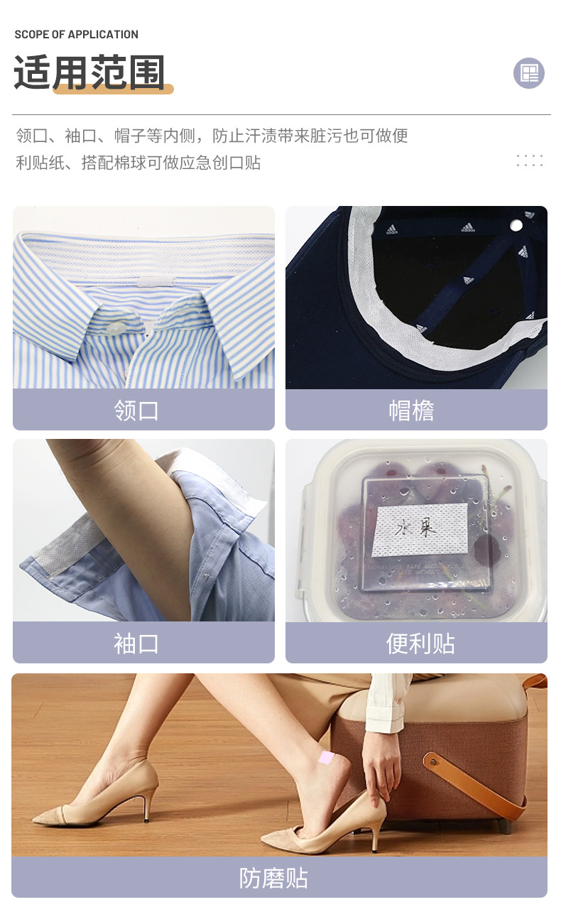 Прямые поставки одноразовых наклеек на воротник, наклеек для одежды, наклеек на воротник, невидимых впитывающих пот наклеек для военной подготовки