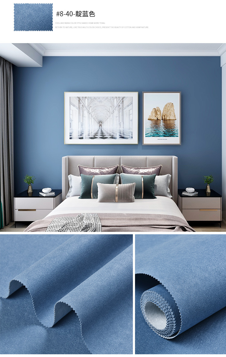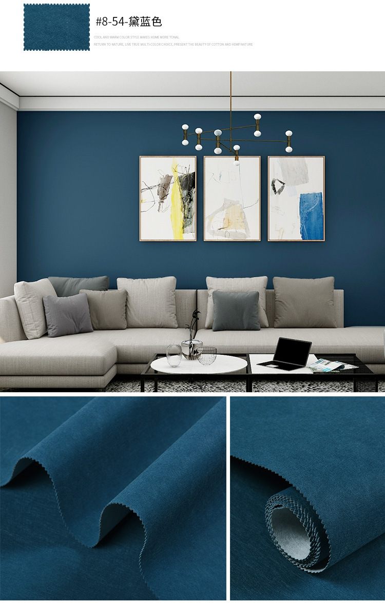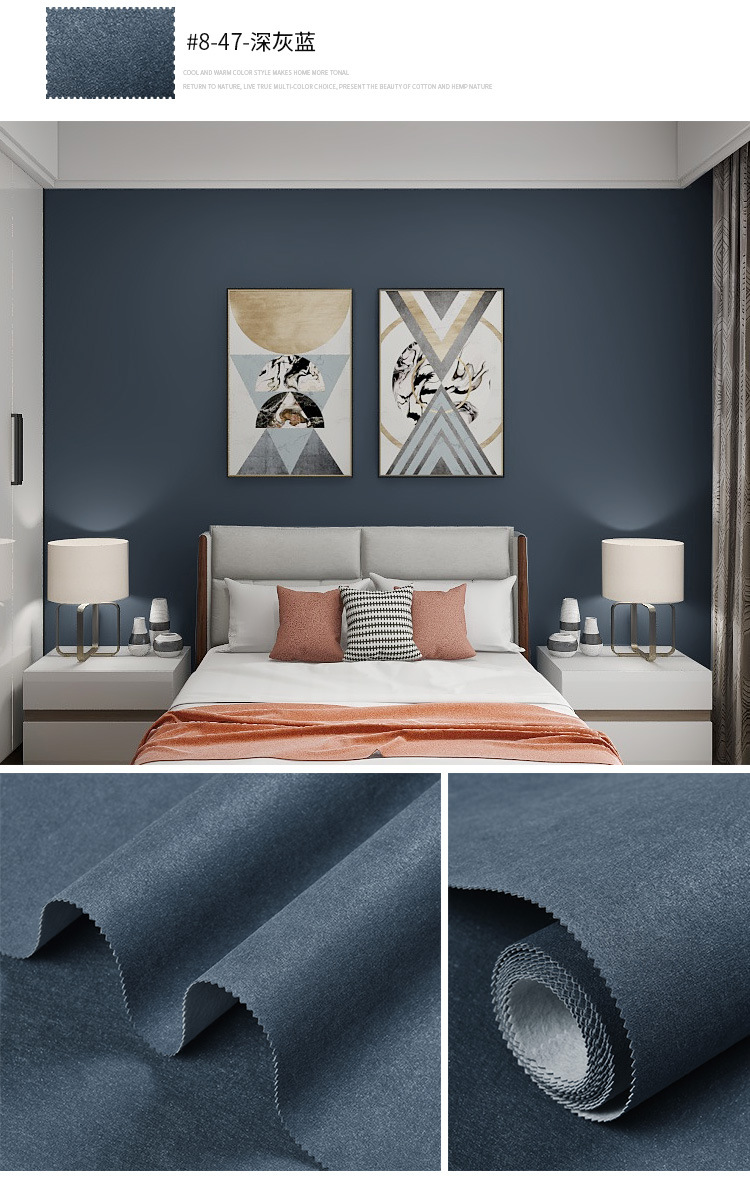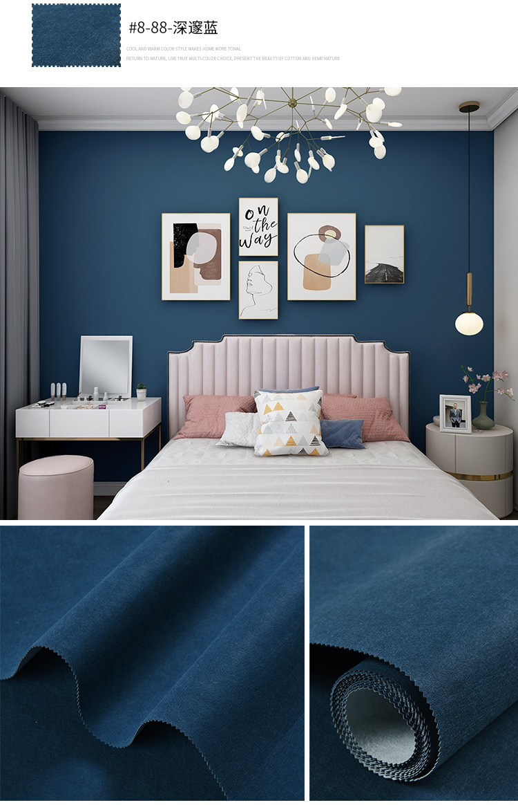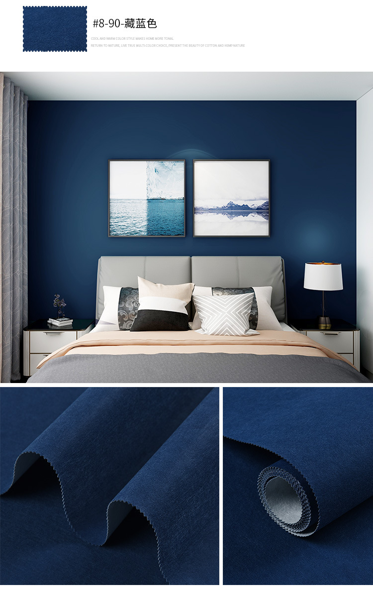 Настенная ткань в скандинавском стиле, синяя, бесшовная, для всего дома, современная простая детская комната, фон для телевизора, темно-синяя настенная ткань у кровати