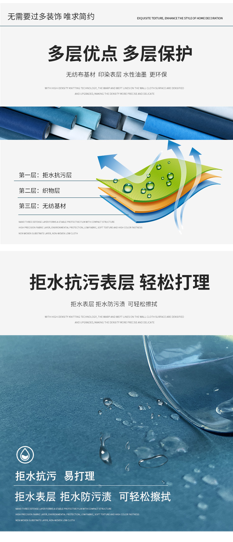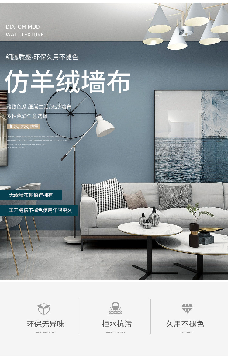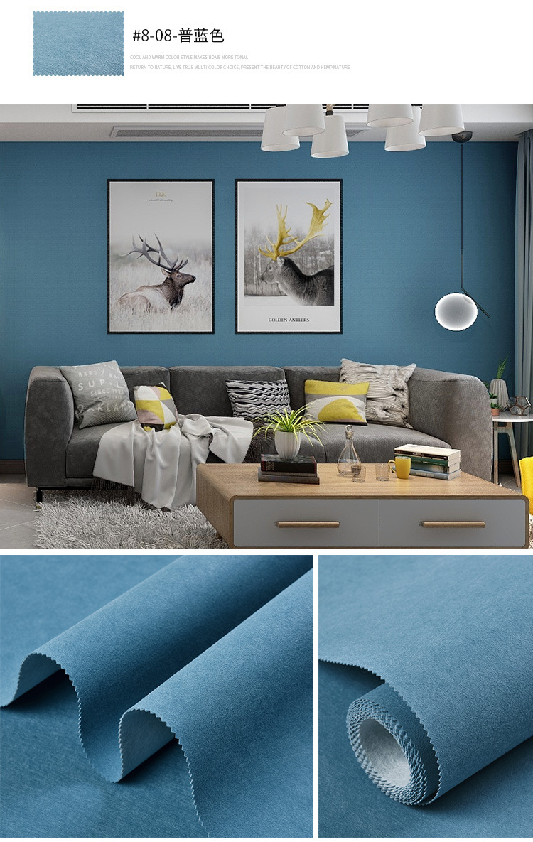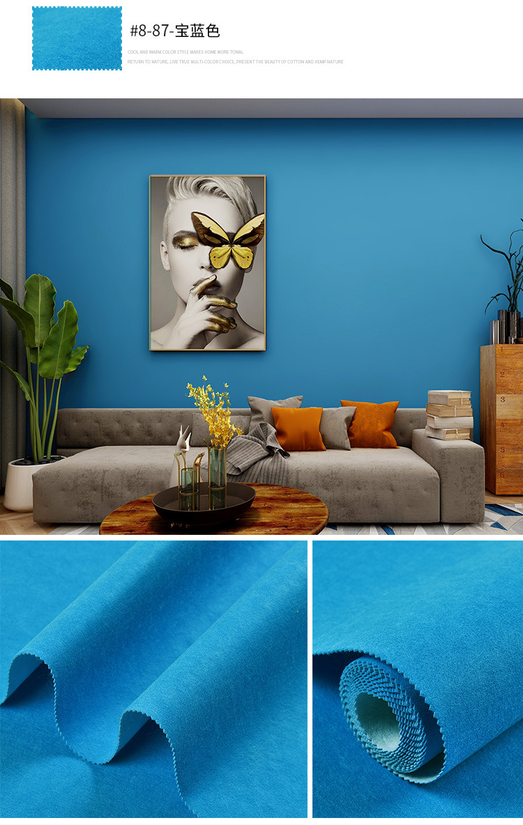 Настенная ткань в скандинавском стиле, синяя, бесшовная, для всего дома, современная простая детская комната, фон для телевизора, темно-синяя настенная ткань у кровати