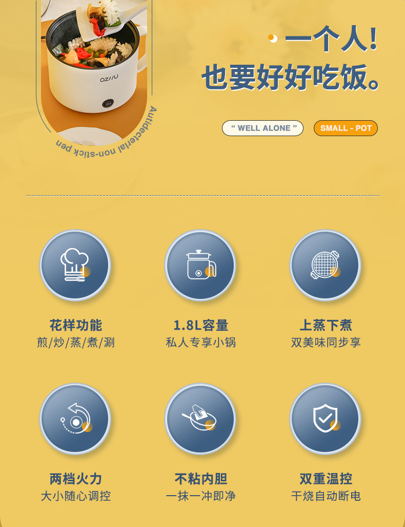 粤尔德直供家用多功能电火锅学生宿舍煮面小型单人不粘电煮锅代发